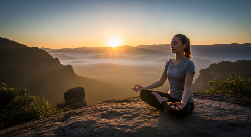 Mindful movement and breathwork in serene environments.